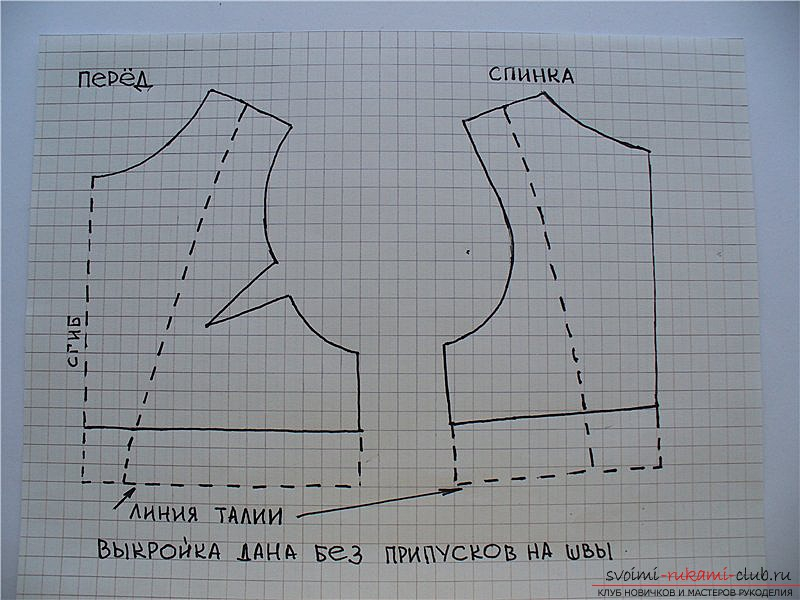 - Делаем выкройку спинки, но длину подравниваем к боковинам.