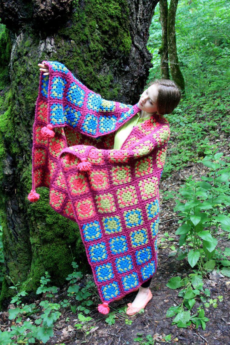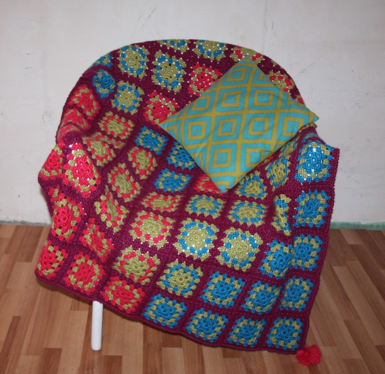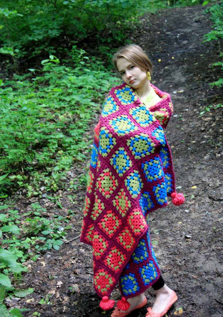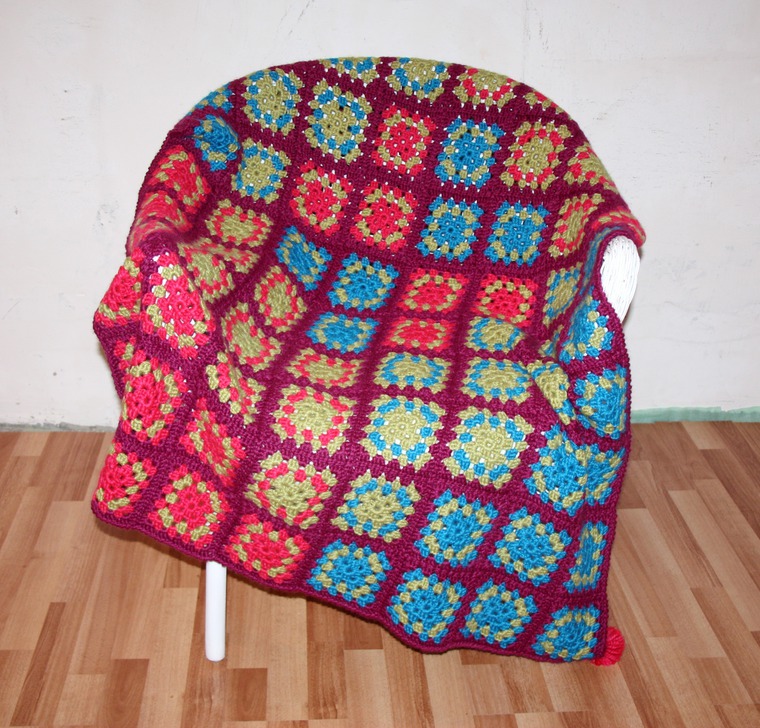 В этой публикации я расскажу, как создавался мой плед из мотивов «бабушкин квадрат».