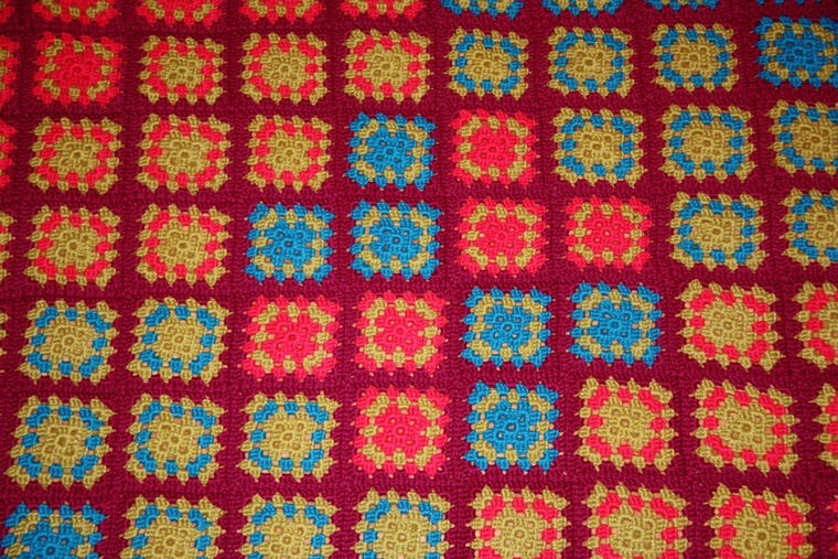 Целое море тепла и уюта шириной 110см., длиной 165 см. из 96 “бабушкиных квадратиков” хорошего настроения весом 2,5 кг.