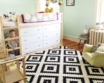 - В Икеа ассортимент ковров довольно большой, но не все из них подходят для детской спальни. Лучшим выбором станет ковер из нейлона, так как это материал не вызывают аллергии, легок в уходе и долговечен. С осторожностью следует выбирать ковры из шерсти (на фото), они очень красивы и мягки, но могут вызвать аллергию. Худшим же выбором станет ковер из полипропилена, самого недолговечного и очень непрактичного. Еще один совет – откажитесь от ковров с длинным ворсом, уж слишком сложно поддерживать их в чистоте.