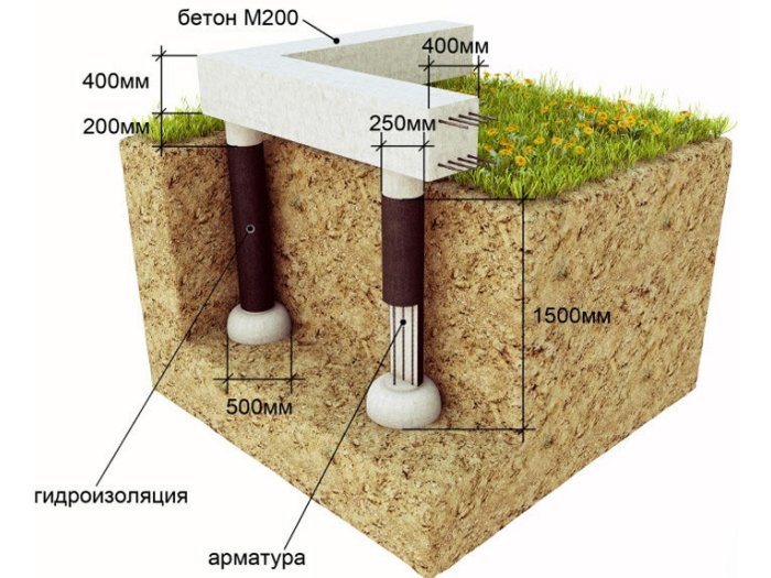 Схема столбчатого фундамента для беседки.