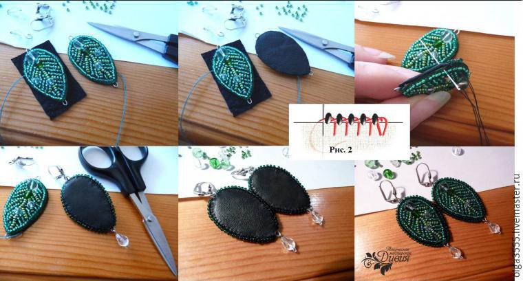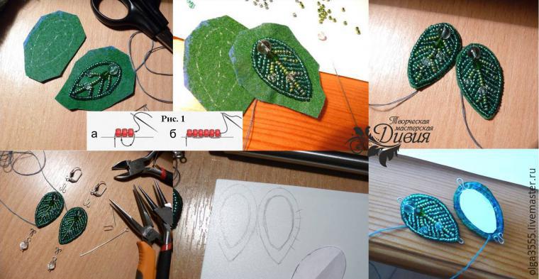 Серьги в форме листиков из бисера, схема плетения
