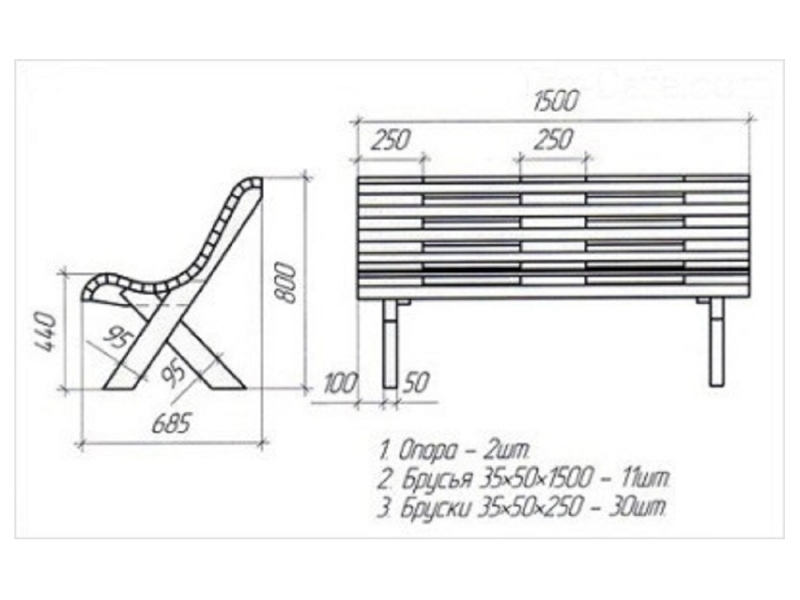 Типовая конструкция скамейки для сада на даче