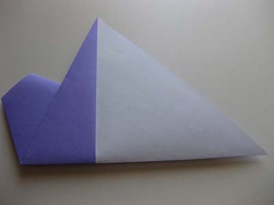 Получившийся треугольник ещё раз складываем пополам. На этот раз справа налево.