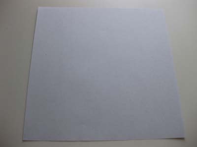 Шаг 1. Возьмите лист бумаги 15х15 см и положите его цветной стороной вниз. По обеим диагоналям по очереди согните лист, а затем разверните его.