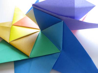 Шаг 13. Чтобы завершить работу над этим модульным оригами, надо прикрепить первый блок к восьмому по такому же принципу, как соединялись другие концы звезды.