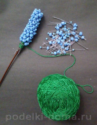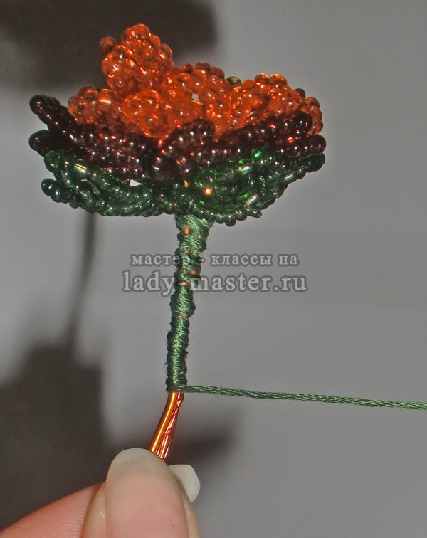 Теми же нитками обмотайте стебель цветка длинной в 3 см.