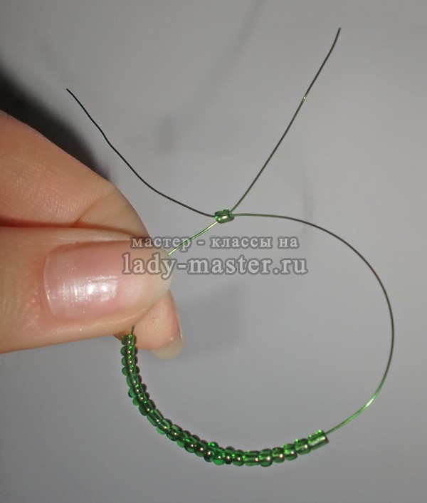 Второй кончик проволоки пропустите через последнюю бисерину.