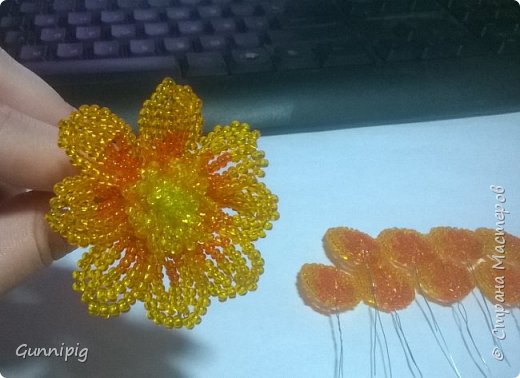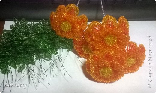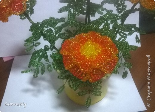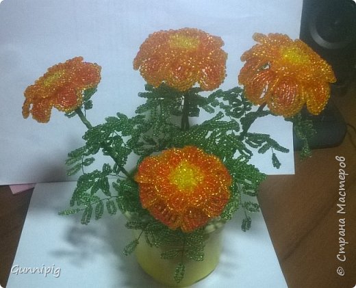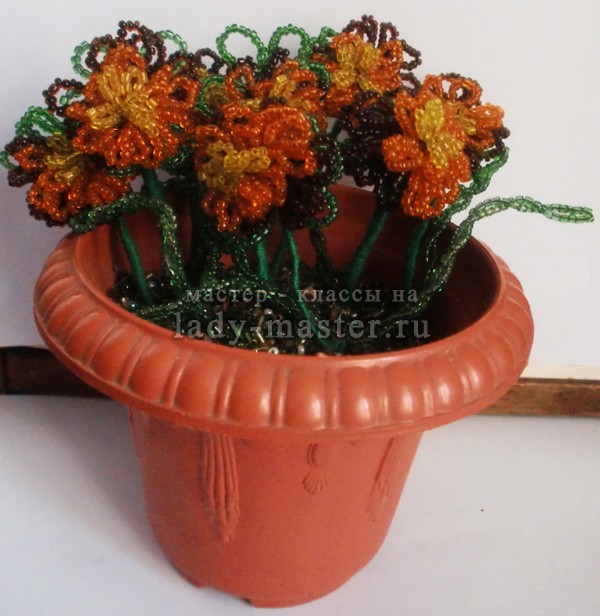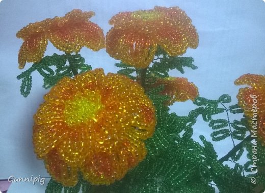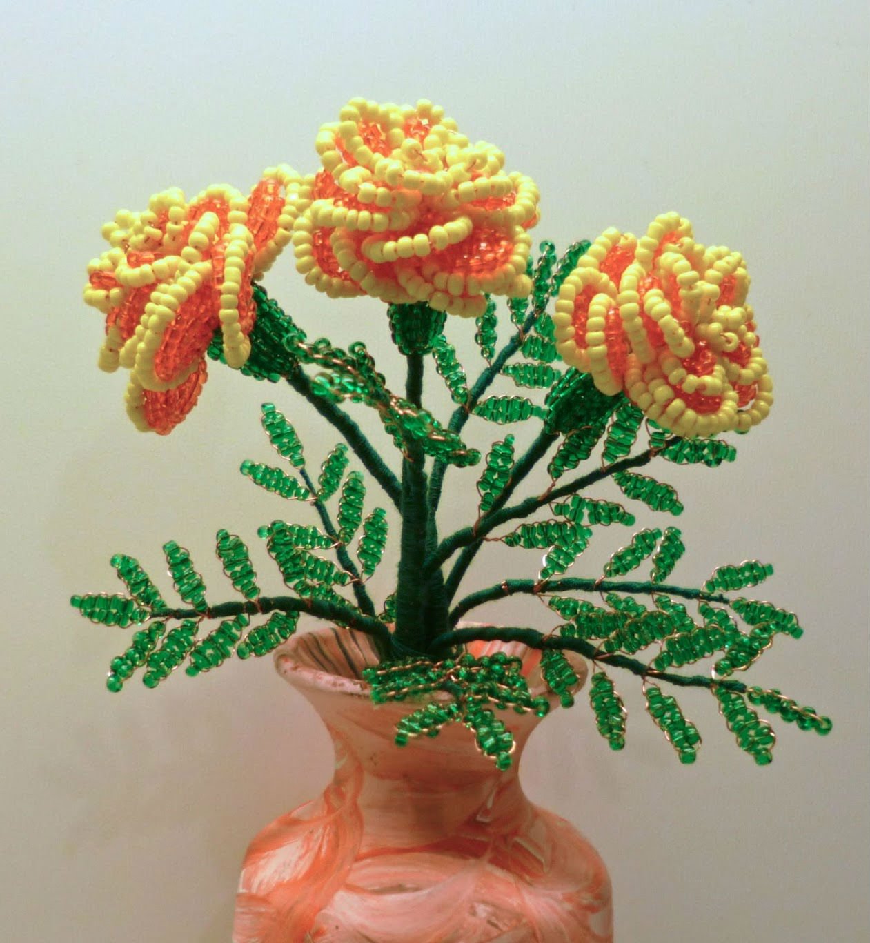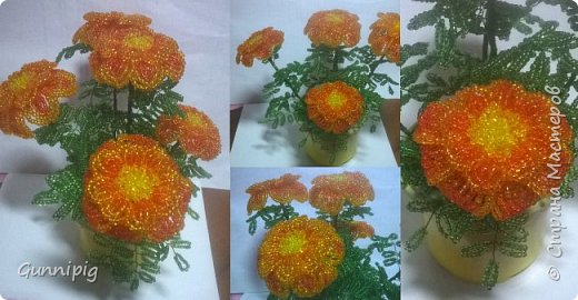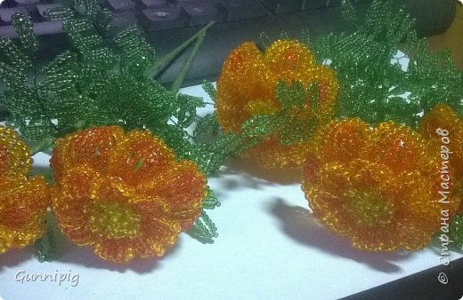 Мастер-класс Флористика искусственная Бисероплетение Мастер-класс бархотки бархатцы из бисера Бисер