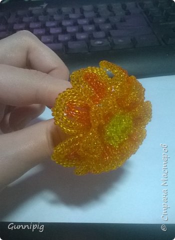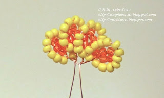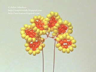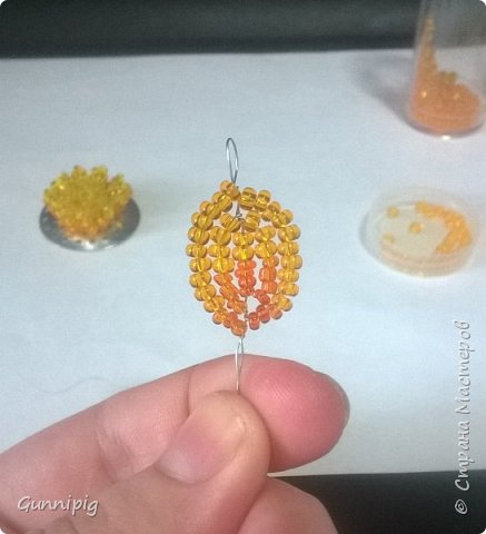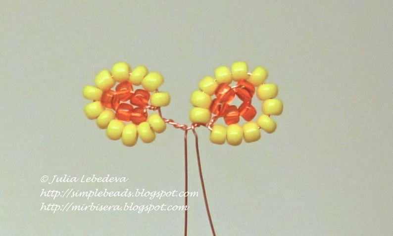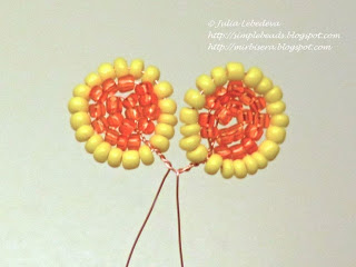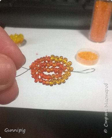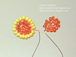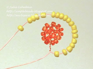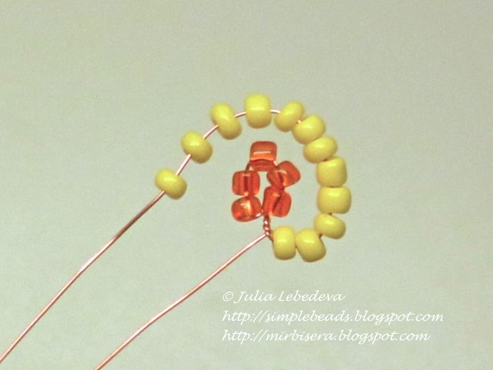 берем одну из серединок-заготовок и два вида бисера (желтый и св. оранжевый)