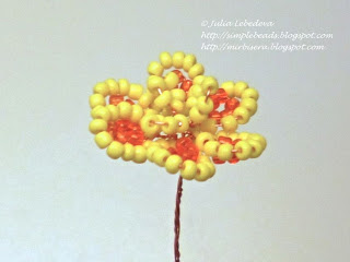 Самый маленький центр – желтый, изготавливается из 5 петель по 7 бисеринок.