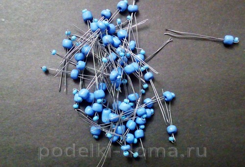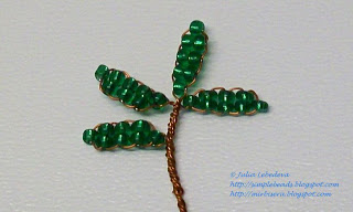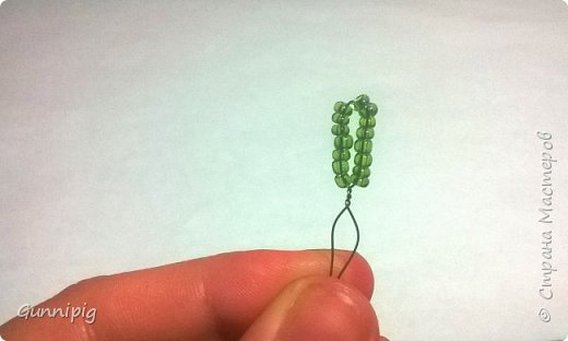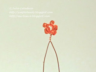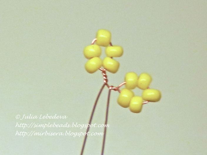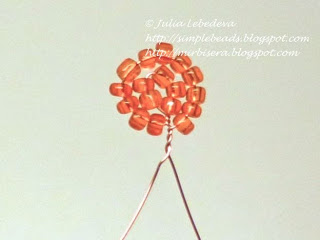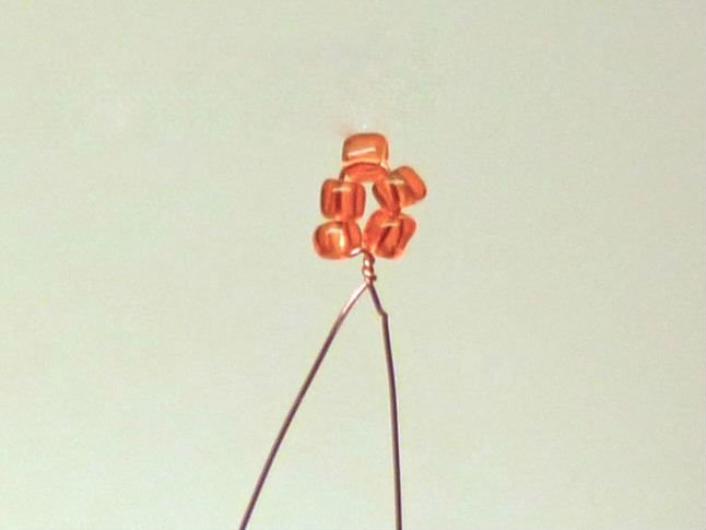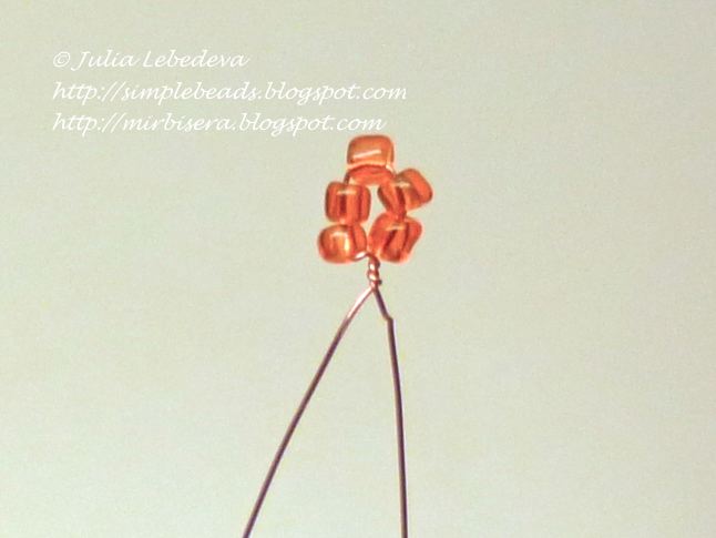 Насадите их на проволоку в самую середину, сложите бисеринки в петельку и скрутите проволоку под ними в 2-3 оборота.