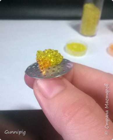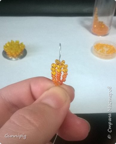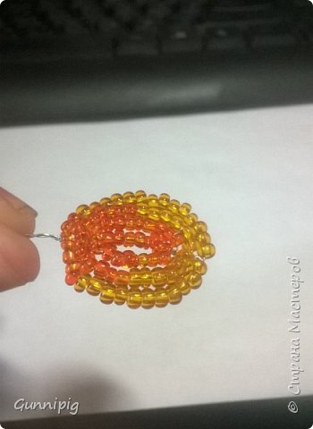 Следующий этап – дуга из бисеринок желтого цвета над бисером оранжевого цвета.