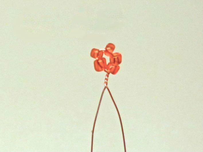 Для выполнения следующего ряда на этой же проволоке сделайте всего 6 лепестков.