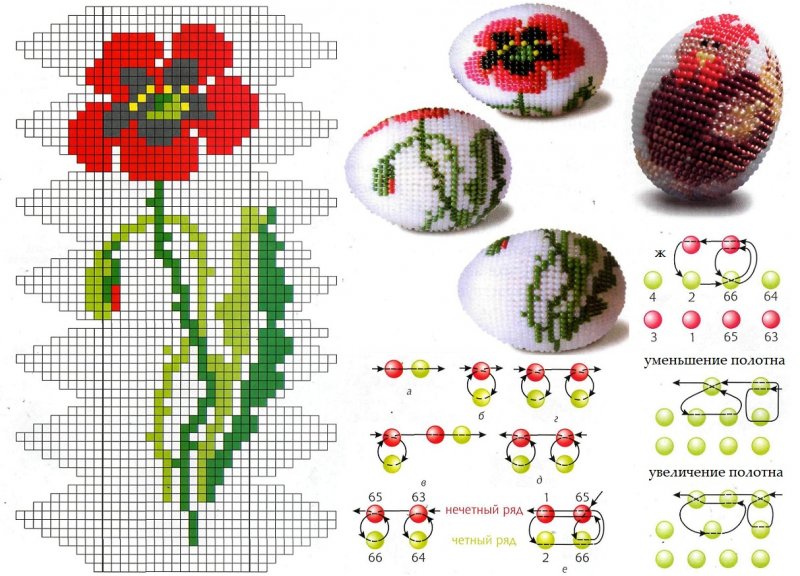 Пасхальных схем из бисера существует большое количество, они являются отличным вариантом праздничного оформления яиц. Оформлены они всегда ярко и необычно.