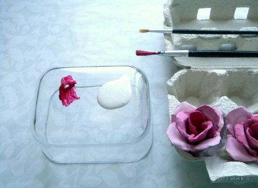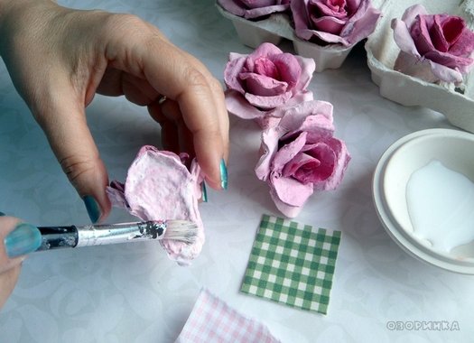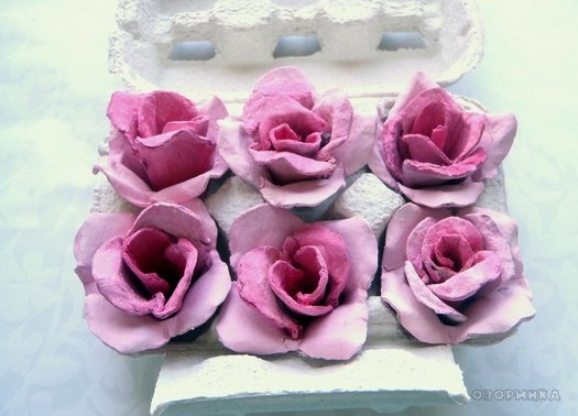 Розы из яичных лотков