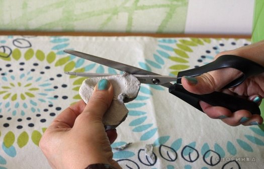 - Из лотка для яиц вырезаются ячейки.