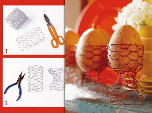 Кажется, что объемное яйцо сделать очень сложно. Но если взять настоящее и обмотать его проволокой, то получится очень изящная конструкция. Как извлечь яйцо? Разбивать его нужно аккуратно, иначе есть риск погнуть подарок. Также можно взять шприц и толстую иглу и высосать все содержимое из яйца.