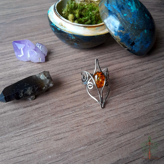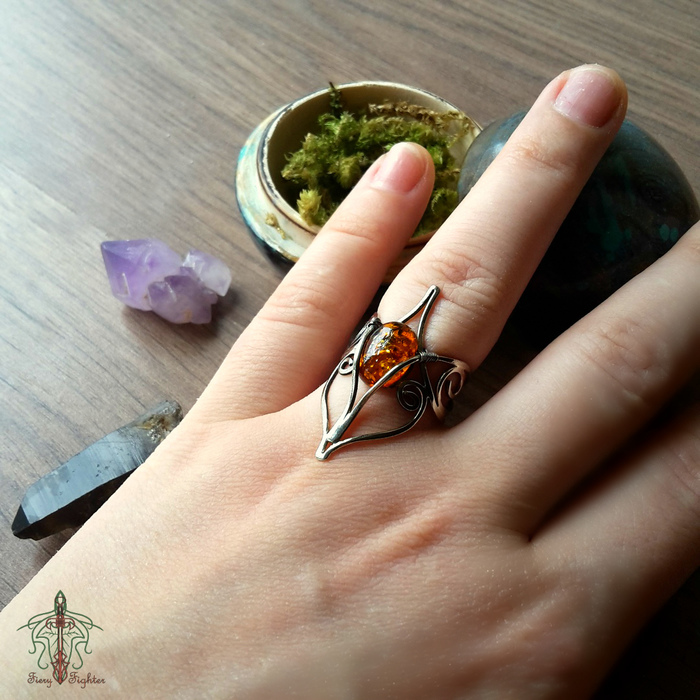 Крупное кольцо из нейзильбера выполнено в затейливом восточном стиле, что в сочетании с янтарем дало мне повод вспомнить Фрая и ненавидимое сэром Максом кафе)) Кольцо, несмотря на свою объемность, очень воздушное, с плоской шинкой, и потому вполне пригодно для повседневной носки. Не имеет жесткого размера, потому как разъемное. Причем, в отличие от многих разъемных колец, практически не разбалтывается в процессе носки, благодаря жесткому, упругому металлу и широкой, жестко спаянной шинке. При желании могу сделать кольцо цельным. Металл патинирован и тщательно отполирован.
