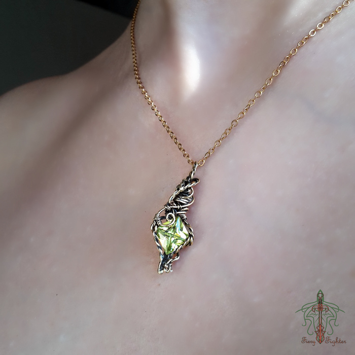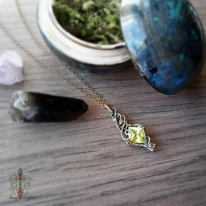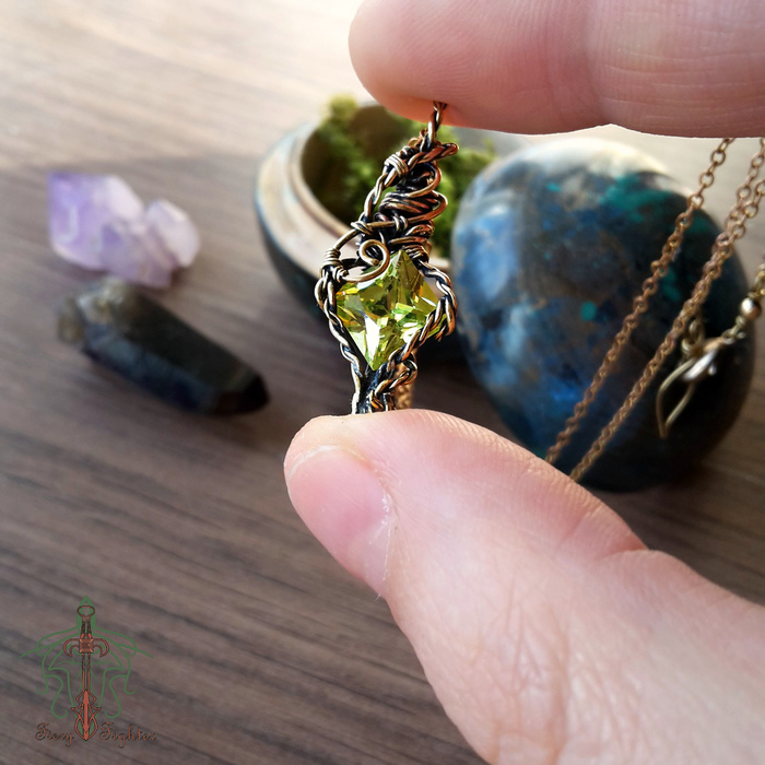 Плетеный кулон выполнен на этот раз в весенних желто-зеленых оттенках. Золотистая латунь и ярко-салатовый фианит – словно солнечные лучи в первых зеленых листочках) Почему название восточное? Потому что лично мне этот кулон напоминает кальян Вот такие сложные ассоциации)) Камень, как и все завитки, надежно зафиксирован, ничего не болтается и не цепляется за одежду. Цепочка латунная с запаянными звеньями, без покрытия. А это значит, что цепочка не почернеет и внезапно не оборвется. Застежка – карабин. Кулон патинирован и тщательно отполирован.
