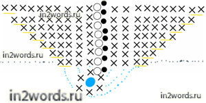 2 ряд (голубые 17 // белые 11) – 1 ВП + *(2 СБН в 1 СБН прошлого ряда)* 8 раз + 1 СБН + // + *(2 СБН в 1 СБН + 1 СБН)* 3 раза + 2 СБН в 1 СБН + 1 СС