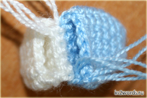 Первая голубая часть (верхняя) начинается с кольца амигуруми.