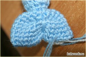 Берем «ягоду» и вяжем за ее задние стенки «крылышки».