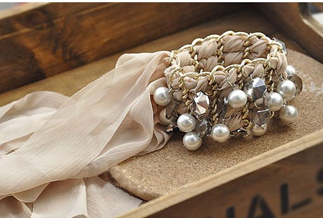 Таким образом, браслеты преображаются и становятся довольно нарядными.