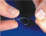 Если вы хотите, чтобы часть лески была свободна от бусинок, а оставшиеся на ней бусины не двигались, можете использовать также зажимные бусины. Выглядит это так: