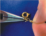Украсить браслет также могут разные металлические подвески. Они крепятся к специальным бейлам для бижутерии , которые легко надеваются на леску. Бейлы и подвески соединяются с помощью соединительных колечек . Для того, чтобы разъединить колечки мы можем использовать круглогубцы и плоскогубцы.