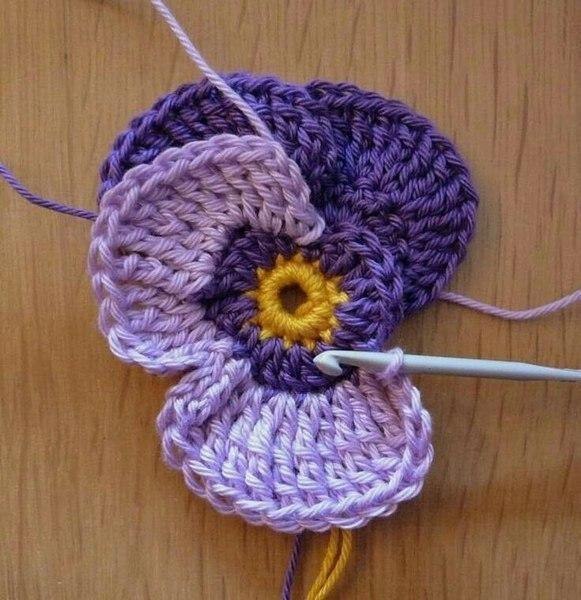 - По желанию можно обвязать каждую деталь цветка многослойными петлями, визуально создавая объемность.