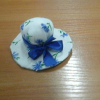 Мастер-класс «Поделка из ткани и картона «Шляпка-игольница» Предлагаю вашему вниманию поделку – игольницу в виде шляпки. Для работы нужны кусочки ткани, картон, синтепон или вата, клей, ножницы,.