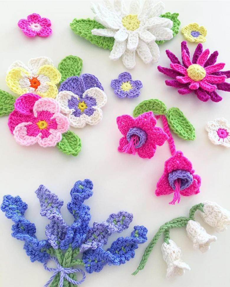Цветочная вязка отличается уникально неповторимым и оригинальным стилем. Такое недорогое украшение на шапке из разноцветной нити несет особый колорит головному убору. А красивое ожерелье спадающих к низу объемных лепестков пряжи наверняка вызовет зависть окружающих на торжественном мероприятии. Связанная вручную брошь обновит повседневное платье.