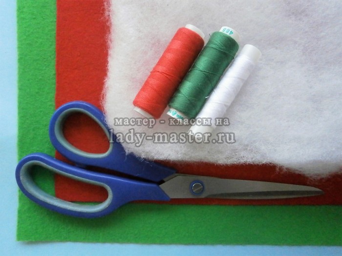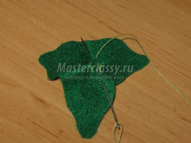 Для листиков понадобятся кусочки зеленого фетра. Если фетра нет, можно сшить листики из зеленой ткани. Это чуть сложнее, но результат тоже будет отличный.