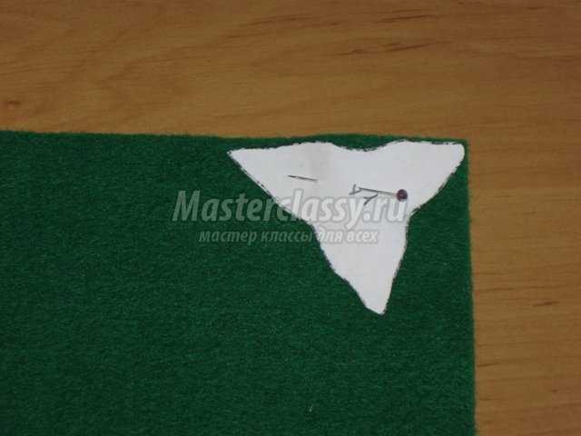 На зеленый фетр булавками прикалываем выкройку чашелистика.