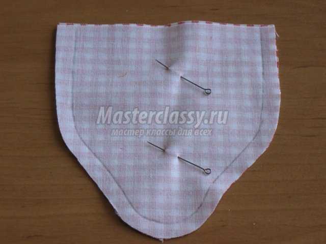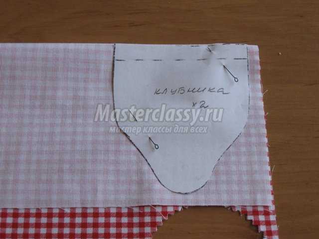 Складываем в два слоя ткань, подготовленную для клубники, лицом вовнутрь.