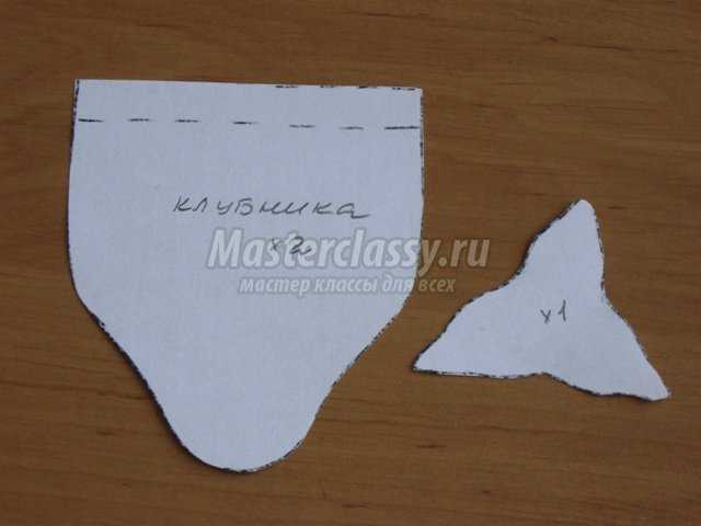 На листочке бумаги нарисуем детали клубники и чашелистик. Указываем их количество. Если вам будет проще распечатать эту выкройку на листе бумаги, сделайте это, только на всю ширину формата А4.