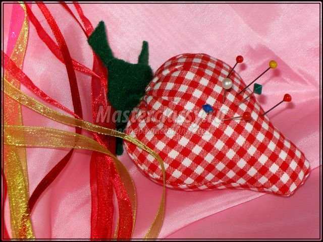 Игольница клубничка текстильная. Мастер класс
