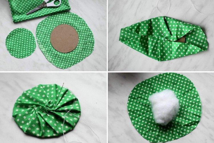 - Вырезать 2 круга из ткани.