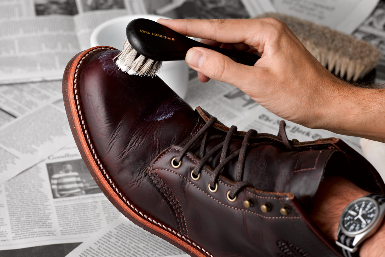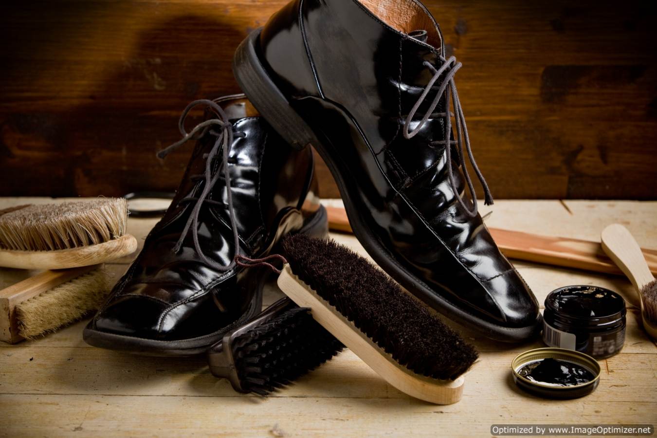 Чтобы сохранить блеск ботинок из лаковой кожи , их необходимо отполировать. Полировка не только улучшает внешний вид изделий, но и увеличивает устойчивость лака к различным негативным факторам. Полирование проводится в несколько этапов. Очищенную и высушенную обувь сначала покрывают тонким слоем оливкового масла (вазелина, глицерина или касторового масла). Масляную пленку нужно оставить для впитывания на 10 – 15 минут. Затем излишки масла удаляются, после чего круговыми движениями поверхность обуви полируется отрезком ткани из фланели, замша, шерсти. Также можно использовать специальные средства для ухода за лакированными изделиями. Для очищения от загрязнений и придания блеска могут использовать крема, масла или аэрозоли.