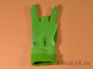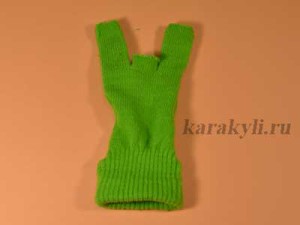 Хвостик перчатки загибаем назад и пришиваем к голове.