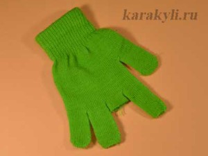 Потребуется перчатка на взрослую руку. Вырезаем нужную часть как на фото. Снизу перчатку отрезаем как можно ближе к пальчикам.