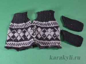 1. У нас была маленькая детская однослойная перчатка с коротким запястьем. Поэтому чтобы ее удлинить мы распороли подворот.