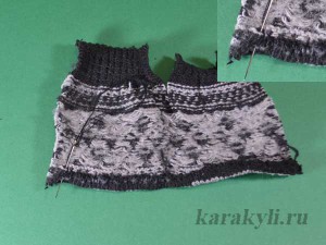 - Теперь самое время пришить заготовки к варежке.