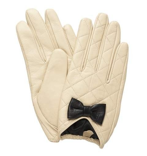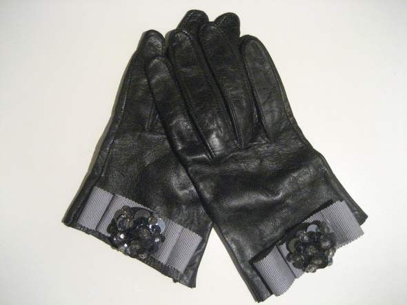 Идея декора кожаных перчаток — из лент делаем бант, и на него приклеиваем брошь.