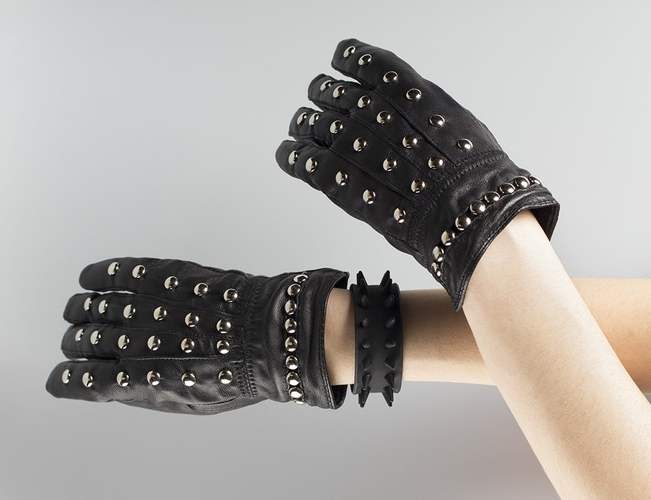 Шипы и другая металлическая декоративная фурнитура коснулась и перчаток.