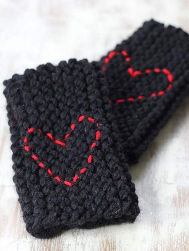 Вязаные варежки или митенки можно украсить элементарной вышивкой.