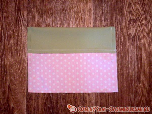 Кармашек надо вывернуть на лицевую сторону, выправить уголки, приутюжить.