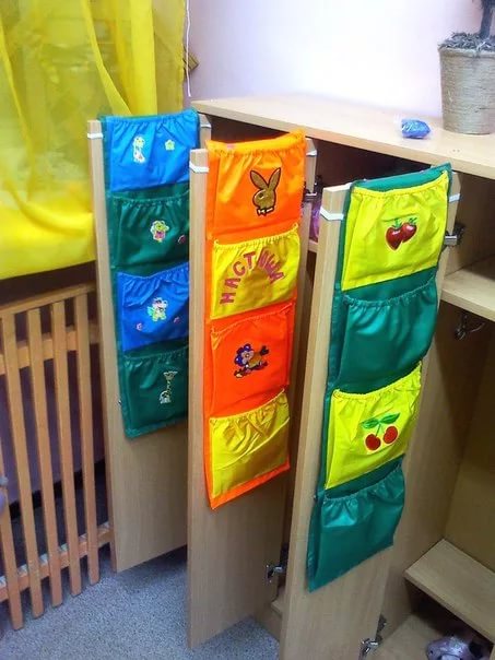 Кармашки для шкафчика в детский сад могут иметь несколько способов размещения секций: