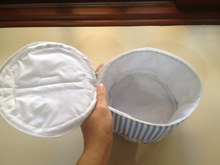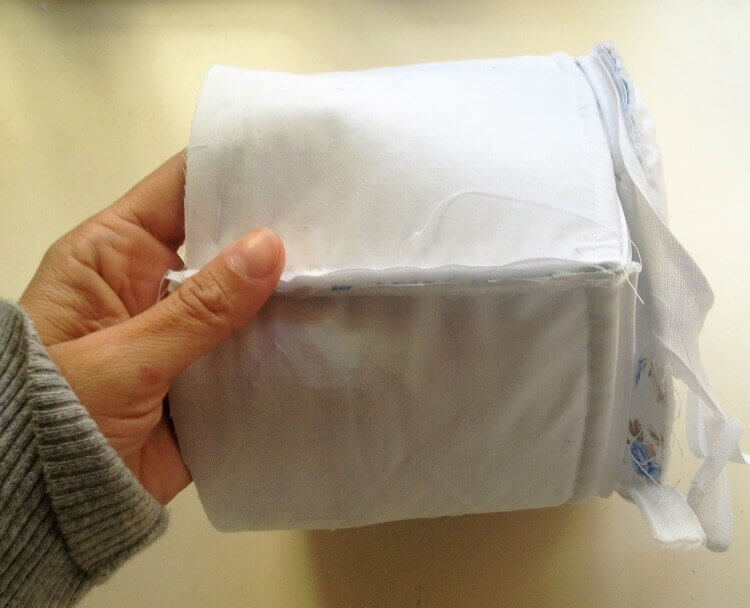 - Чтобы изделие приобрело завершенный вид, необходимо сделать вкладыш из светлого материала. Подкладка укладывается внутрь, и ткань подворачивается наружу.